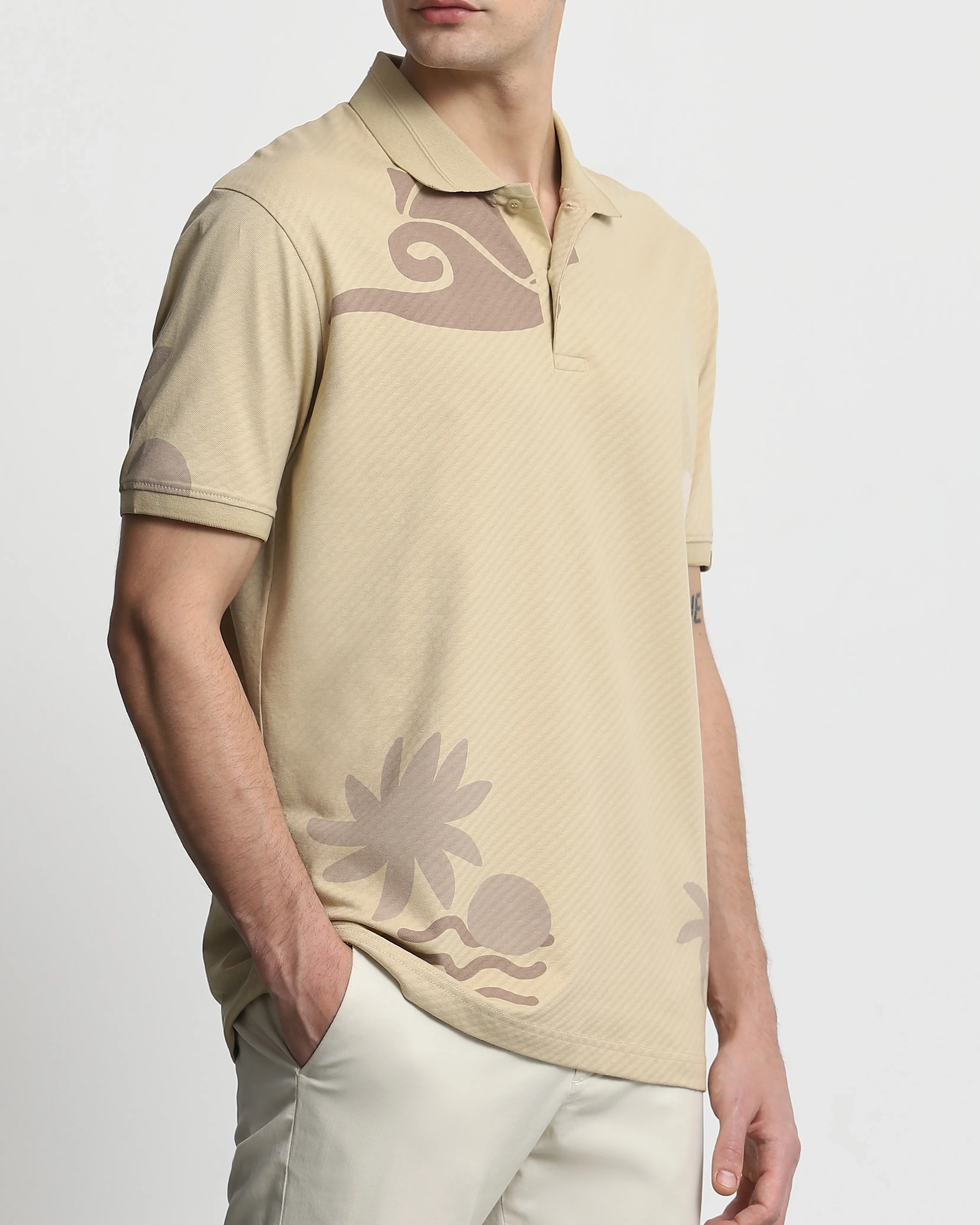 Daily Simple Soft Beige Brocade Texture Polo Shirt