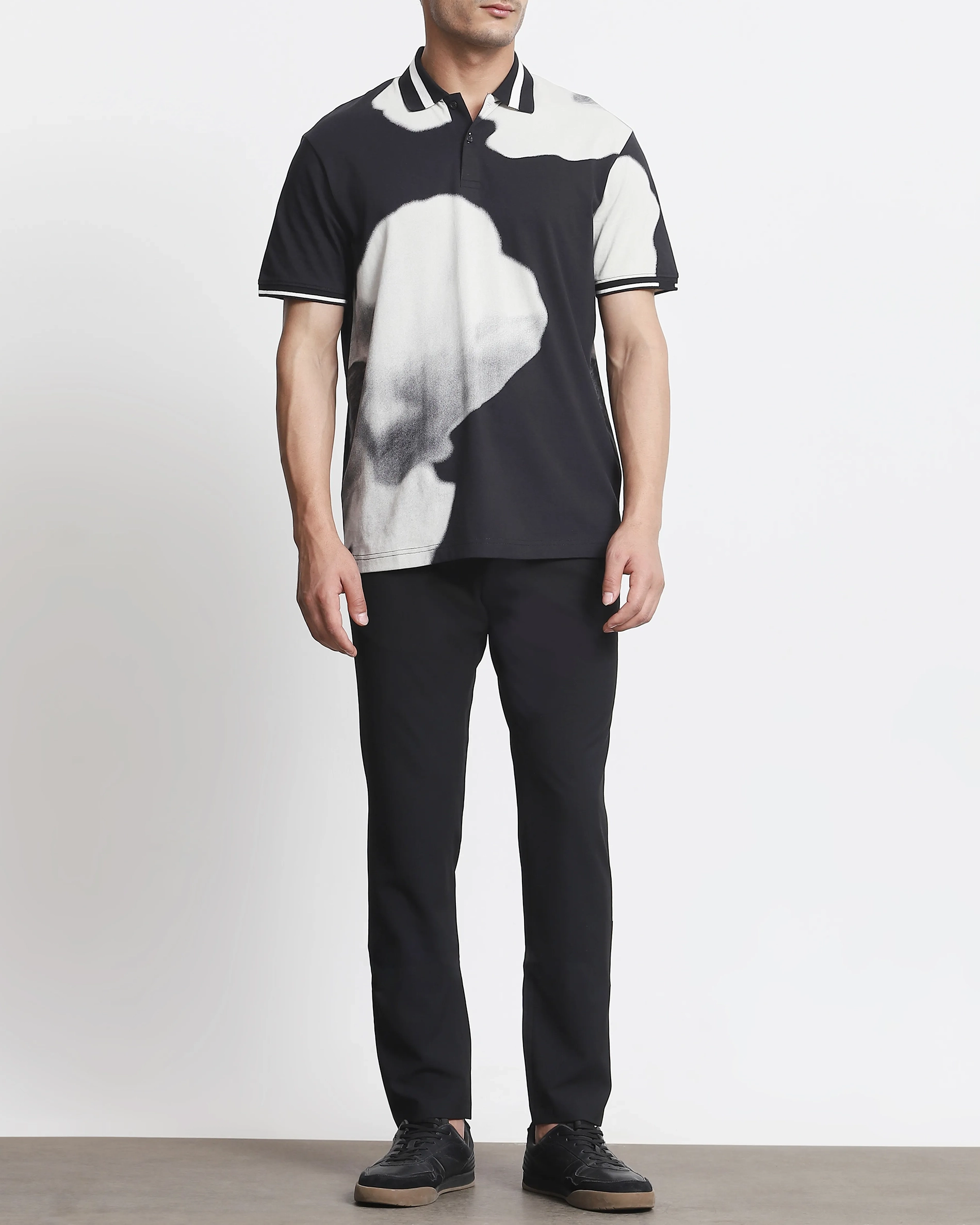 Daily Simple Soft Black Floral Print Polo Shirt
